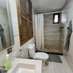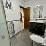 A full bathroom completes this floor , it’s fully tiled has a large walking shower , wall hung vanity with storage and a loo.
