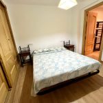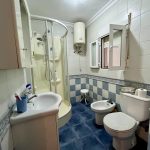 The fully tiled bathroom is located next to the bedroom and is well equipped with a vanity unit, WC, bidet, and corner shower.