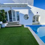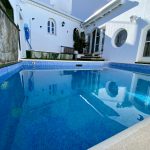 This facade gives no clue that what lies behind is spacious perfectly presented 2 bedroom home with its own pool and a myriad of outside spaces.
